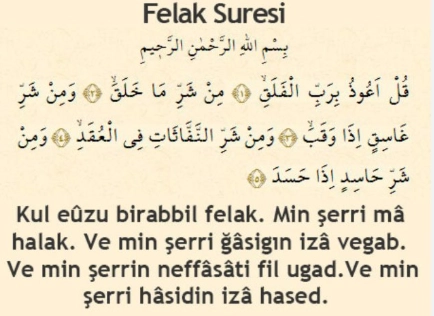 Felak, özellikle nazar, haset ve dışarıdan gelen kötülükler için çok okunur.