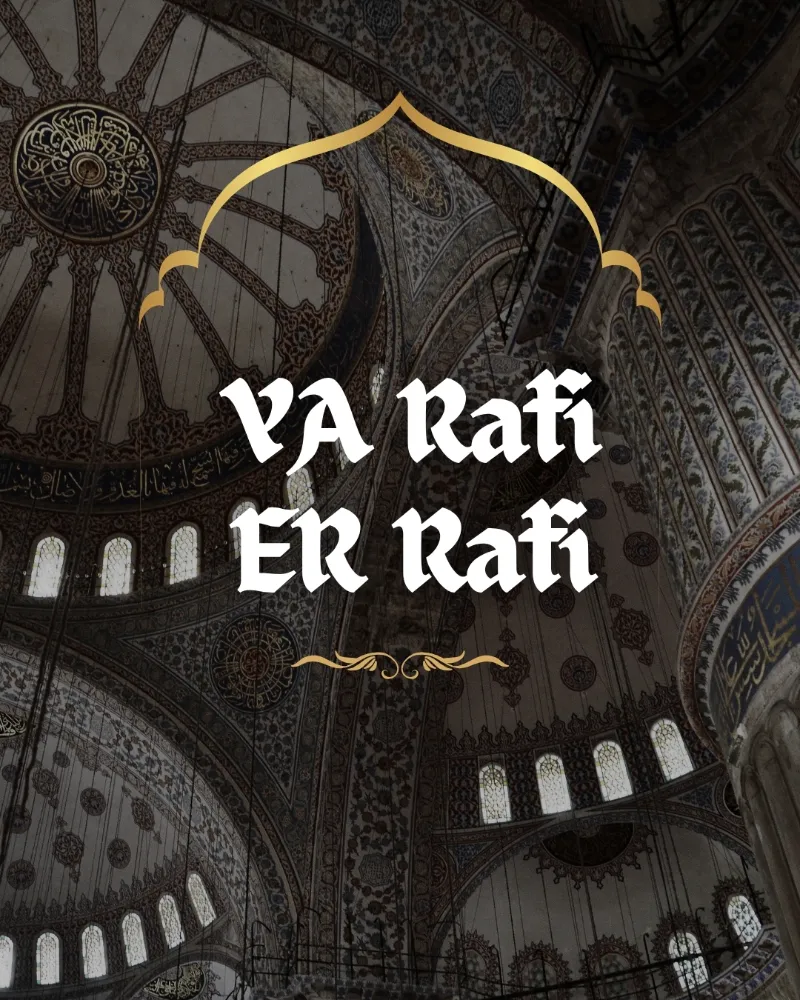 “Râfi’”, kaldıran, yücelten anlamına gelir.